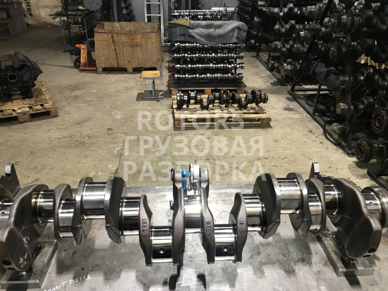 Хорошее состояние , проверен на прогиб — биение составляет около 0,04 мм , шейки проверены микрометром — стандарт . На двух шейках имеются разводы . Для грузовиков Рено DXi13